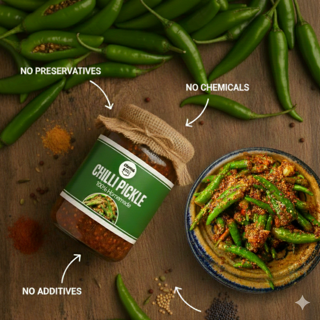 Spice up your plate with Craving Bites Green Chilli Pickle – a true desi delight! 🔥🥰